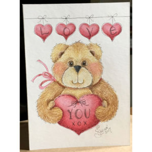 Spring Bunny Welcome Primitive Heart & Signboard for Display by Sharon Chinn A pretty white bunny with a bright pink bow around her ears and she’s holding a bouquet of pink coneflowers. This design is painted in DecoArt Americana acrylics on a 9.5″x12″ heart. I’ve also included instructions to make…