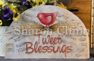 Paint a red bird on a mottled background that has been enhanced with sheet music image transfer. A pretty project that paints up quickly.